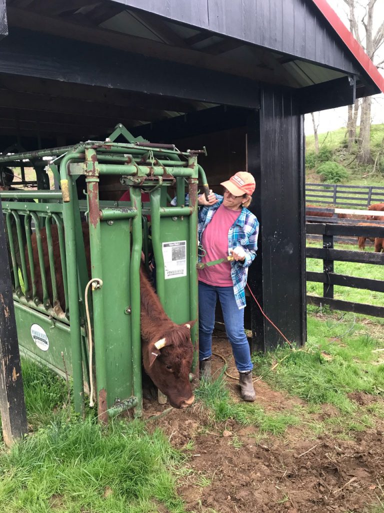 At the head gate is daughter Carolyn. It’s a job for quick reflexes and cows develop little stutter steps to try to out-smart the gatekeeper. But Carolyn has a cool eye and steady hand…probably because of her part time gig as a cancer surgeon at Baylor Medical Center in Dallas.