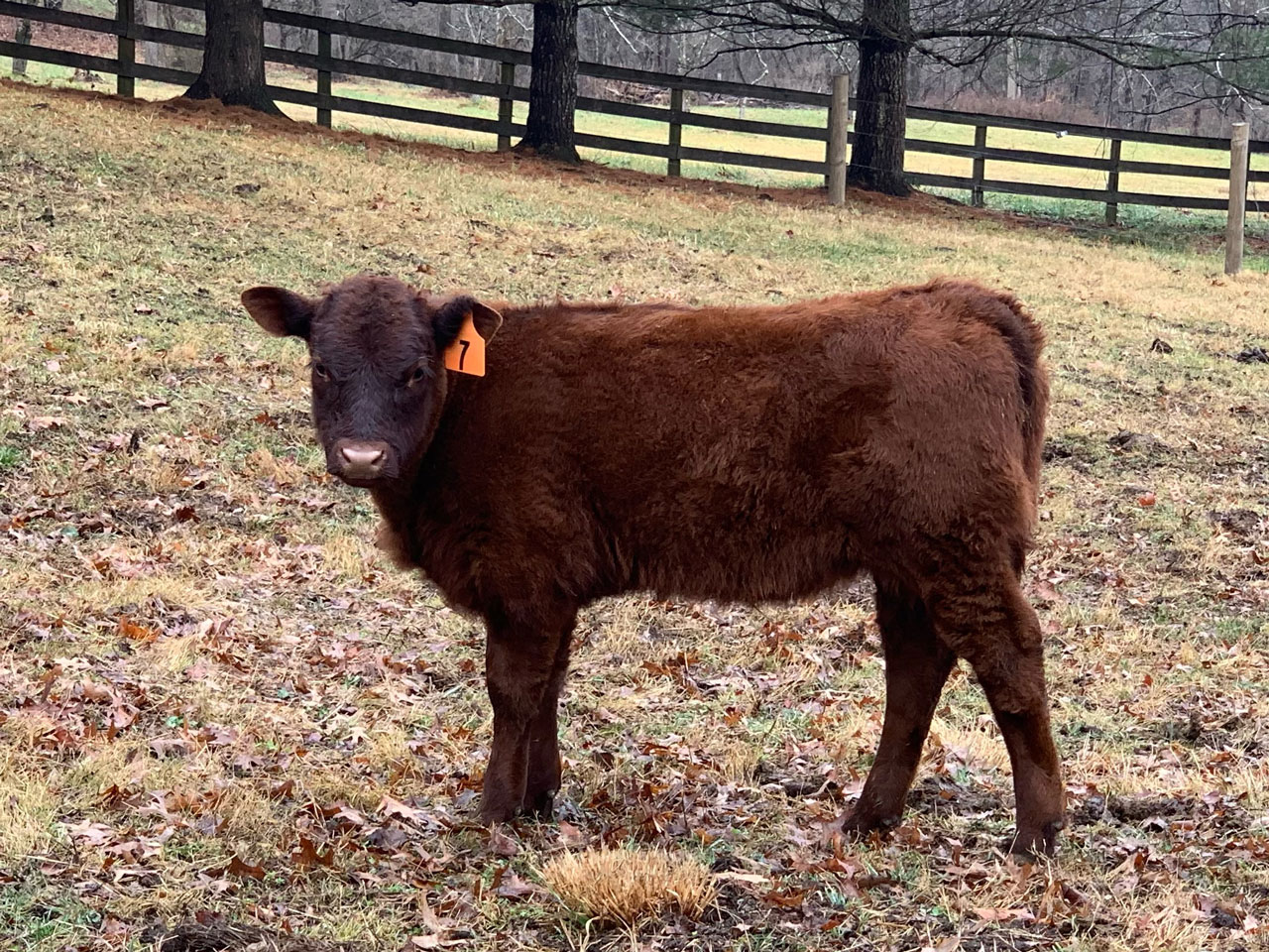 The dam of this heifer was our TDA 4…a “smallesh” cow even by English Devon standards. This girl was 59 pounds at birth but growing nicely.