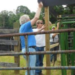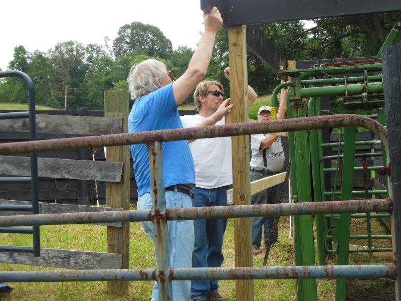 20130621_171….nothing so grand as a new barn.  Just a shed to keep the elements off handlers and animals at the chute.  We’ve put the joists in place and now we’re waiting for the roof trusses to arrive.