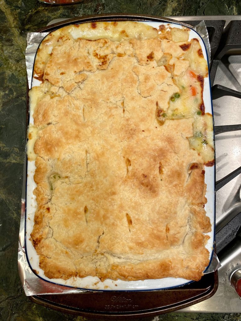 The leaf lard is colorless and tasteless…nothing “porky” about it. Son-in-law Bill Rozett…the family’s world class baker…decided to try it first with crust of a chicken pot pie.