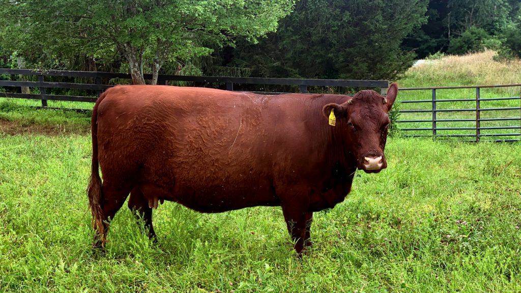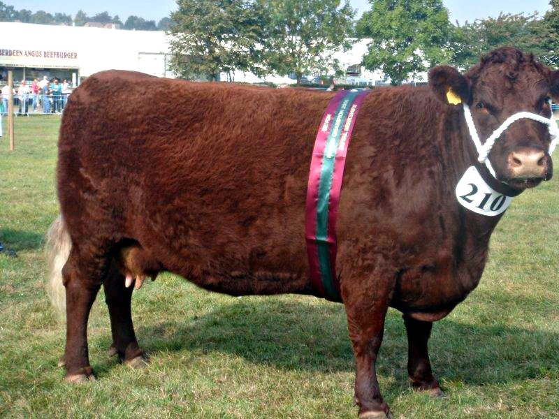 Our friend and veteran cattleman Bill Roberts spotted 7’s dam Cashtiller on a visit to Gavin Hunter’s Tillbrook farm near Cambridge, England, and his judgment was confirmed by pictures and then our first visit along with 50 other Devon breeders on the 2010 tour.