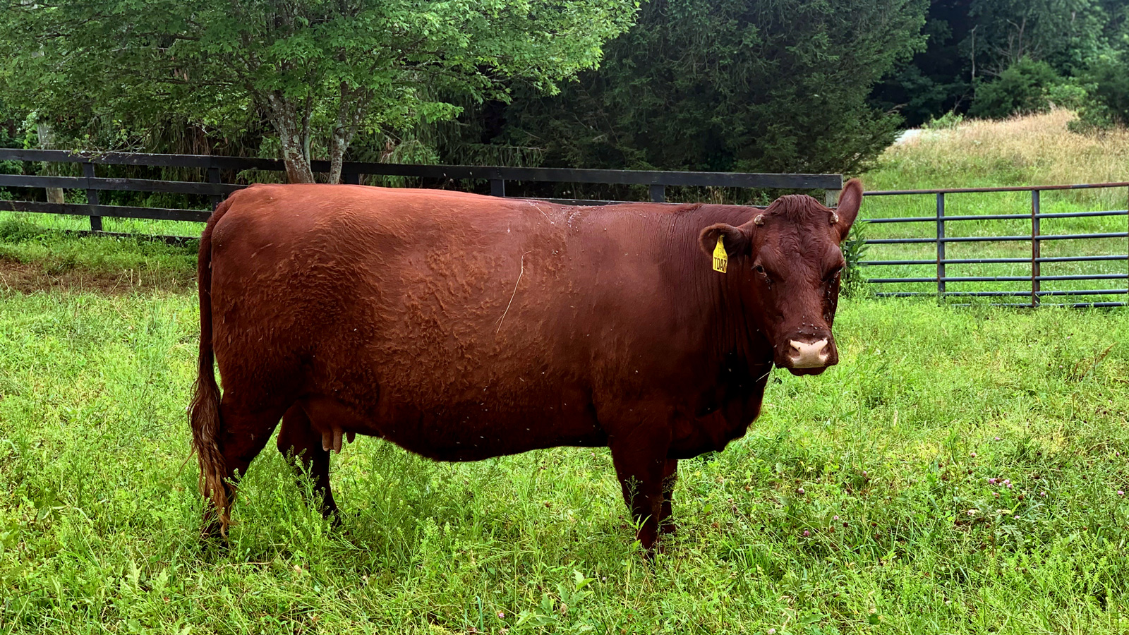 TDA7, daughter of the great Tilbrook Cashtiller who is still the finest cow of any breed we’ve ever seen! We flushed Cashtiller twice in England and nine years ago TDA7 was born here along with five sisters and two brothers.
