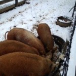 We do give them an extra ration in bad weather. And this is a good time to note that we now are giving them non-GMO feed. It’s always bothered us that the one weak link in our “doing things naturally” process was that we were forced to feed regular grain.
