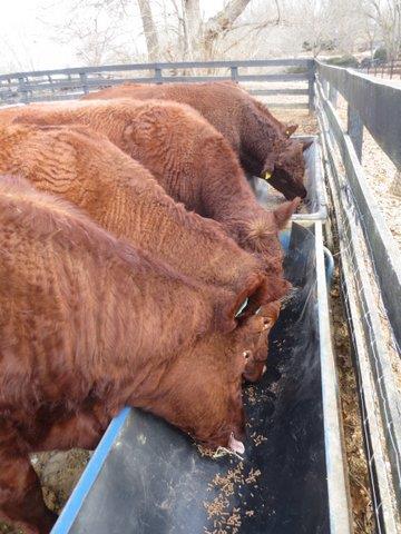 IMG_3104When it gets this cold we do relent and give the young ladies some grain….not only to stay warm but help with their first re-breeding.  If this looks like pretty meager fare, it is; less than two pounds per cow.  (Wooz gets a little more)