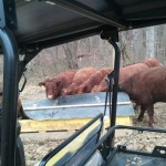 2013-01-21 10.26.09…on the minerals.  We’ve noticed in the past week or two that the cows have suddenly increased their intake of minerals.  We’re assuming the bitterly cold temperatures have finally done-in the fescue grass, which is pretty good feed in the winter.  But the cows (or in this case, the young bulls) know best.  We’ve also begun to put a bale of hay in front of our growing animals—the bulls and heifers—and it is interesting that they know how to balance their intake between the alfalfa and regular hay.