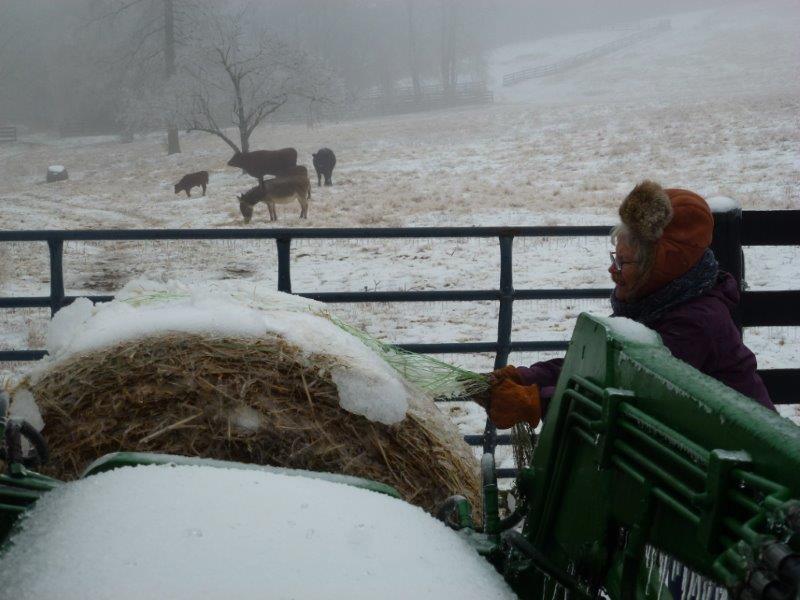Remember we feed very little hay….this is early because of the ice. I had actually hoped to get our main herd through the winter on grass as we did last year. But of course they can’t break through the ice and I don’t like them traveling on our rocky hills.