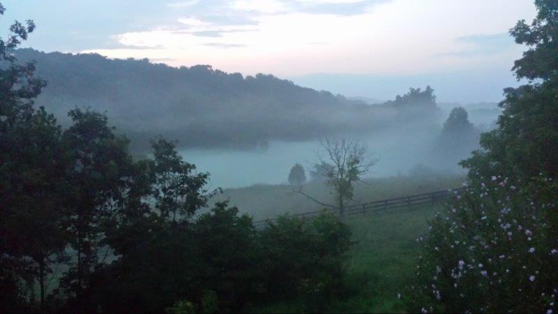….maybe we can sell the view. Our chief-of-everything around here—Duane Ard—snapped this picture from his porch the other evening. That’s the Rappahannock down there in the haze….nearer us, a pasture we’re stockpiling for winter.