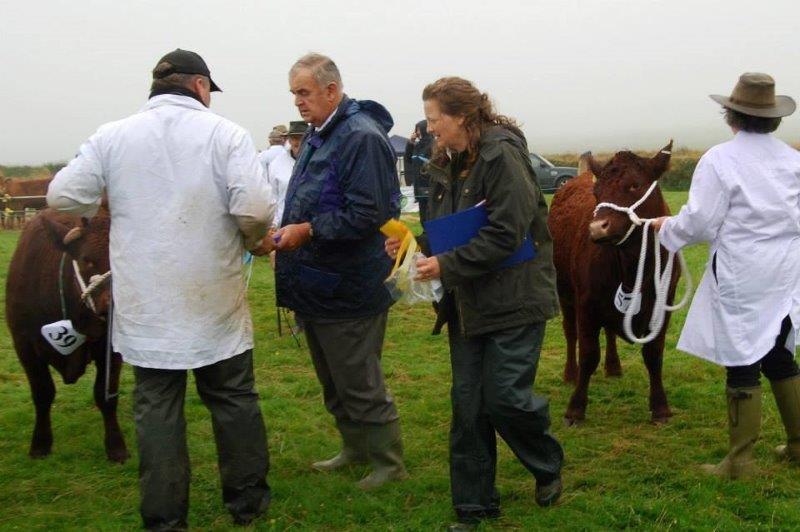 998284_429619507159736_2032960933_n (2)….People!  My mate, Ivan Rowe, braving a gale to judge a Devon show at Camelford, England recently.  The steward for the show was our Cornwall lass, Juliet Cleave.