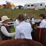 While it’s called “The Royal Cornwall”, it’s a real get-down event. The English can be very informal and fun (note the cow hat) and they do raise beautiful Devon. The judging at the four major shows each year, though, is quite formal. The people showing the animals and the ring men are all in white smocks; the judges wear black suits, ties and bowlers. I’ll dig out a picture.