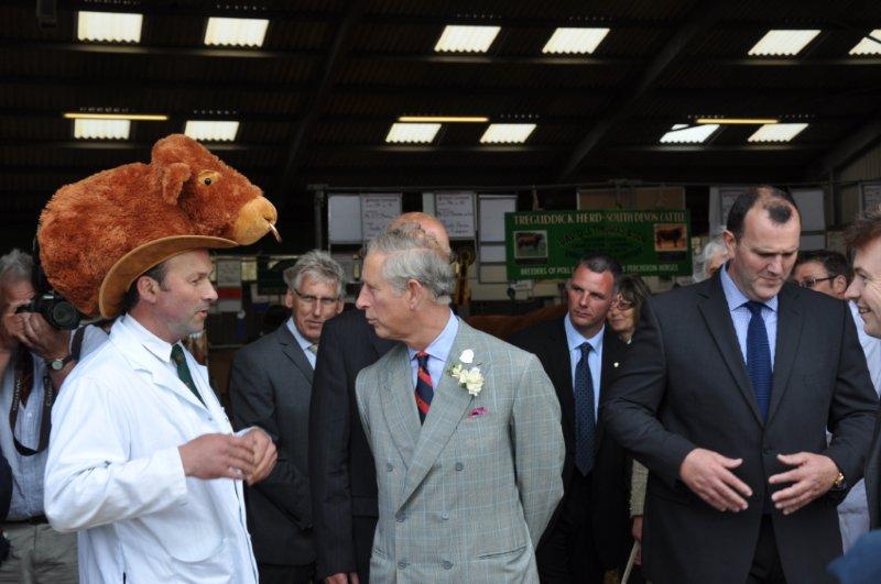 …Prince Charles is not one of my favorite characters on the international scene. But he is a farmer and raises Devon. He and I attended the Royal Cornwall show a few years back. (Full disclosure: he arrived by helicopter; I came in a bus. BUT THAT IS NOT ME IN THE COW HAT!)