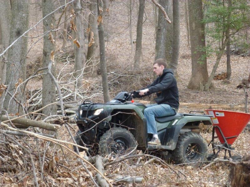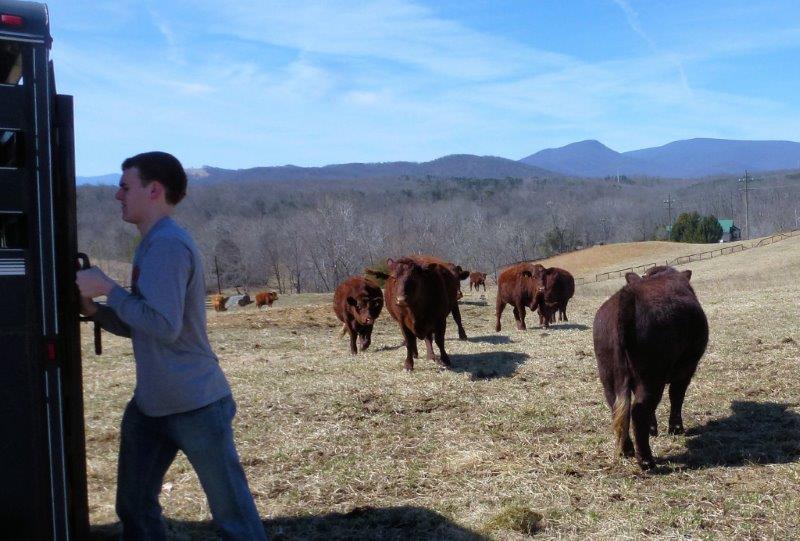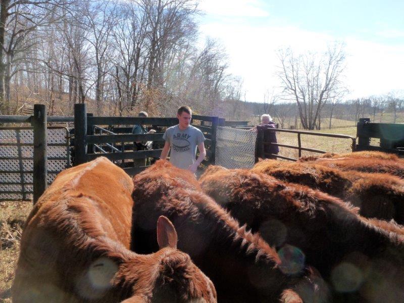On this Spring Break he eschewed the usual Florida getaway of many college students….even a vacation in Sicily….to give us a hand at Thistle Hill. The chores including fence and gate repair, putting out minerals, seeding a recently reclaimed wooded area for pasture (it had grown over with scrub trees), and most important sorting and preg checking cows, then bringing in the bulls.