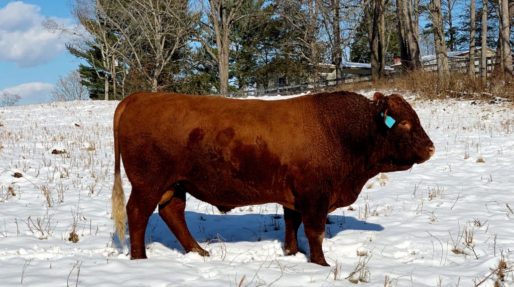 One of Thistle Hill’s fine young American bulls trying to figure out the recent change-able weather. He’s a combination of excellent bloodlines from Rotokawa and Lakota. And he’s one we not only use ourselves but loan to small farms who can’t manage a full-time bull.
