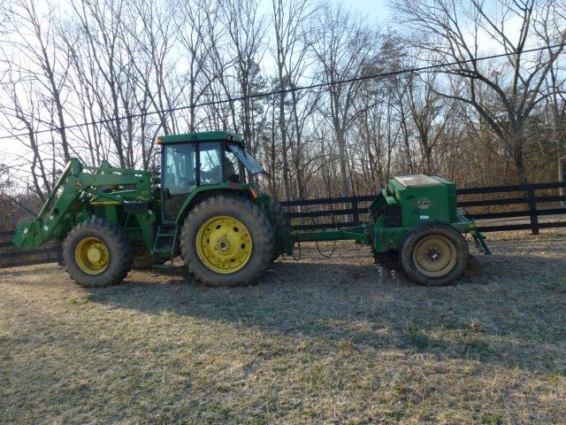 20130323_26For our non-farm readers, we’re towing a “drill”.   A row of blades cuts grooves in the sod and seed is carefully metered into the grooves.  Rollers then pass over the seed, covering the hole.