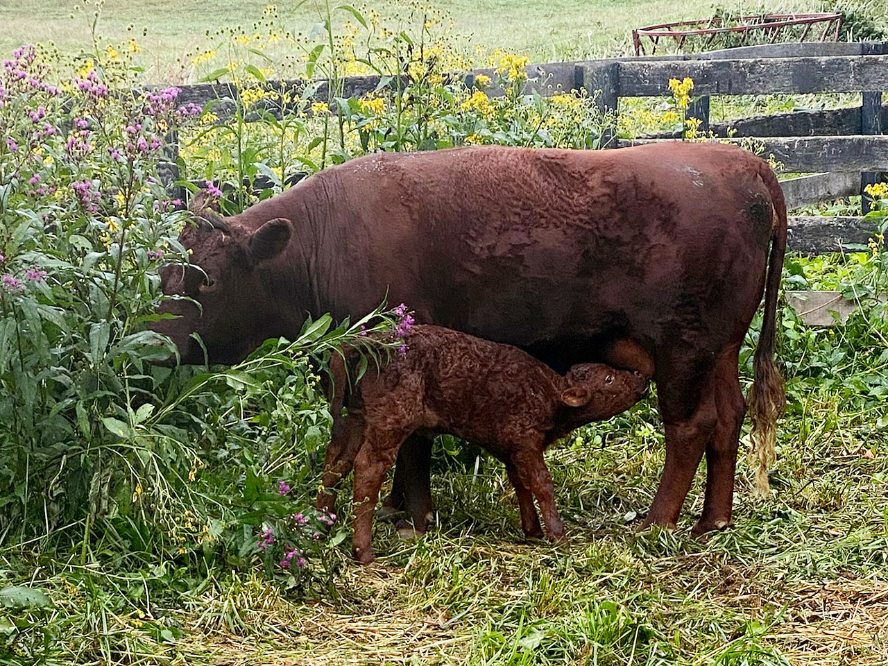 F21 is a Bribery embryo daughter and this is first born…a little heifer by a young Thistle Hill bull out of Goldings Norah.