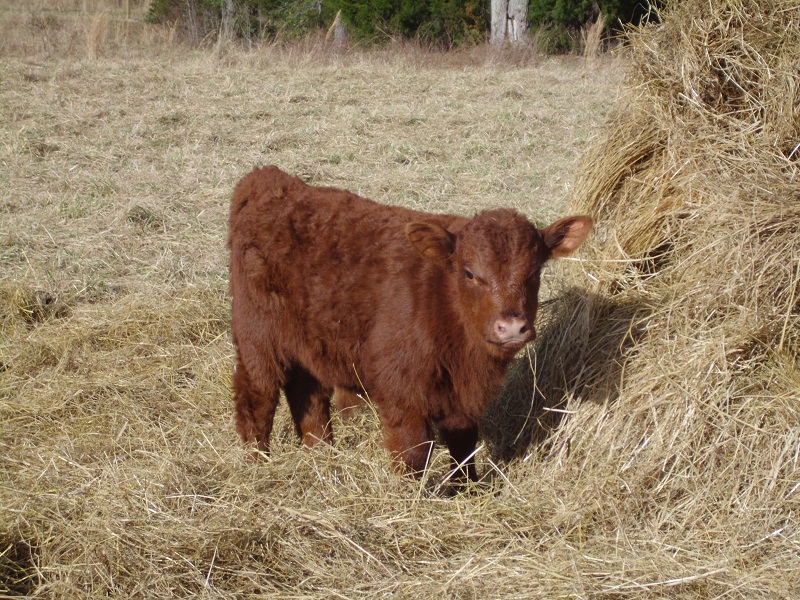 ….this little bull at Elim Springs farm in Amelia, Virginia. Rojo is the son of Thistle Hill S483 (“Izzy”) and one of our former herd bulls, Watson.