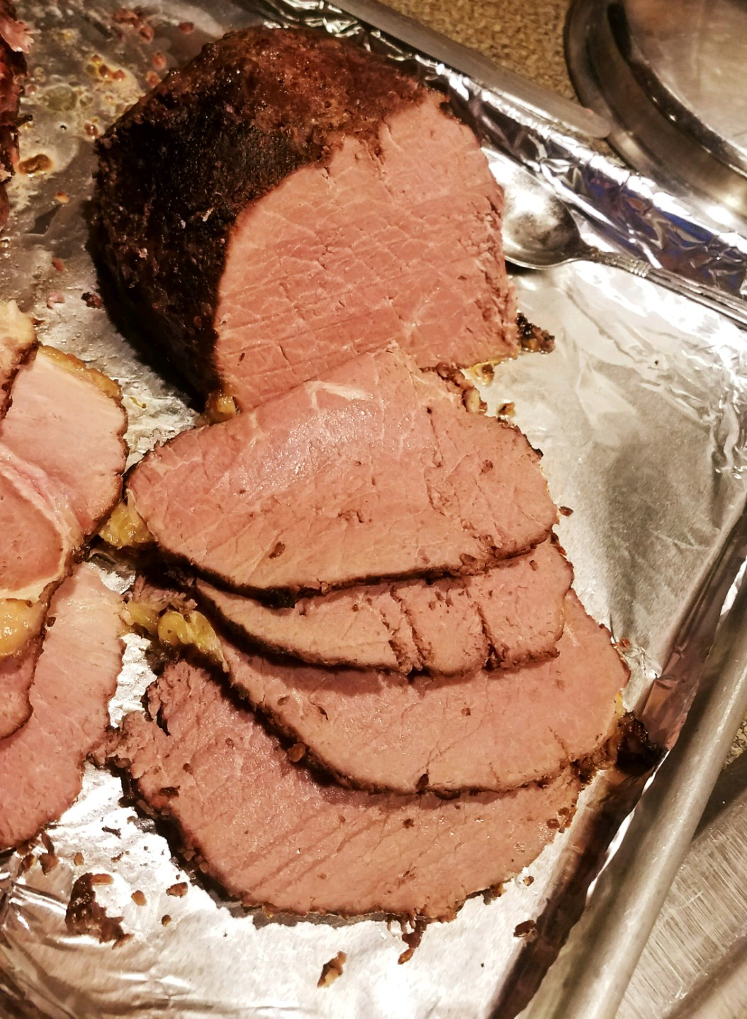 This roast was slow cooked in Baltimore and our customer said he didn’t even have to use a knife. Note the interior, tasty fat in the meat.