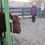 Wooz is holding a stick because many years ago she was run down by an Angus cow and the stick has become part of her dress code when working cows.  But she would never use it.  The meanest she is to a Devon is to adopt her old “school teacher’s voice” and give one a stern lecture.  That was not necessary today and we were finished even before the sun came up.