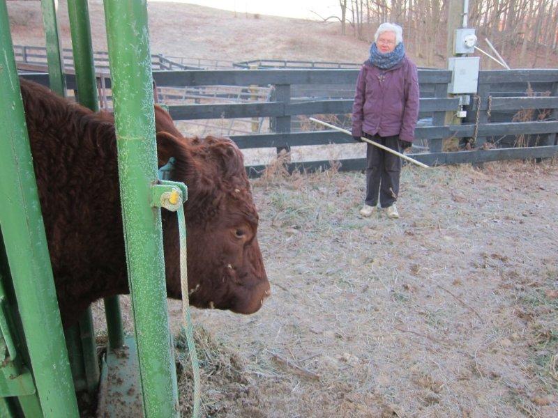 The egg was flushed out of the donor cow in England a week after conception.  That time is noted precisely by the English embryologist and Tom implants the egg here precisely at the same minute in our cow’s cycle.  And that’s why he, and we, stumble out of bed in the middle of the night in January and wish we had decided to raise hamsters…..or something.