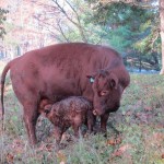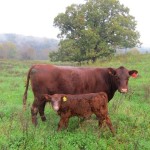…and they’re from heifers who did the job like they’d been having babies for years. T3 in the top picture and her bull calf were interrupted at breakfast….X3 has milk on his lips just like in those advertisements. Devon are known for their high quality milk and that means healthy calves as well as quality meat.