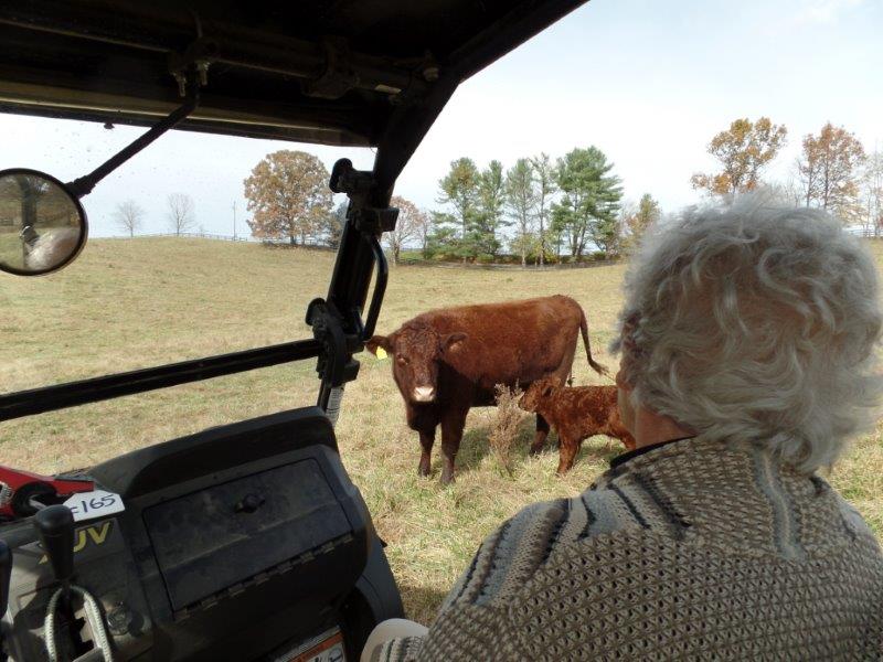 ….but calves. And it’s good to have Wooz riding shotgun again as we move in to tag a heifer’s brand new calf…a sturdy young bull. Couldn’t help remember the old Angus days when we’d have to be sure mom was a long way off…preferably on the other side of a big fence…when we were tagging her baby. Now the Devon mom just stands overhead….mooing comfort to the calf…as we get the job done.