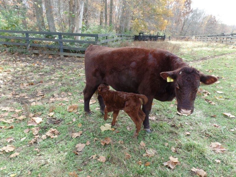 Traditional English Devon™ herd. This young heifer is the second calf for TDA 4. Proud papa is TDA Ransom. I love the way she holds her left leg up to nurse….very proper young Englishwoman.