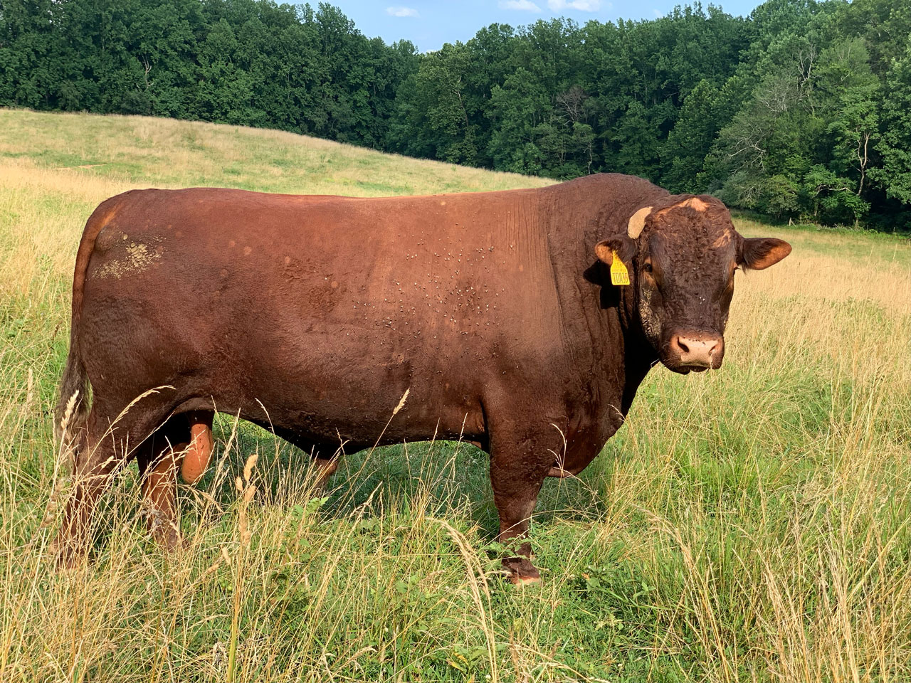 The newest addition to our team of bulls is Defender, son of the great bull Champson Defender out of Thistle Hill Bribery. With the decline in the numbers of absolutely pure English Devon it has taken many years to find a male line to put into rotation in our herd.