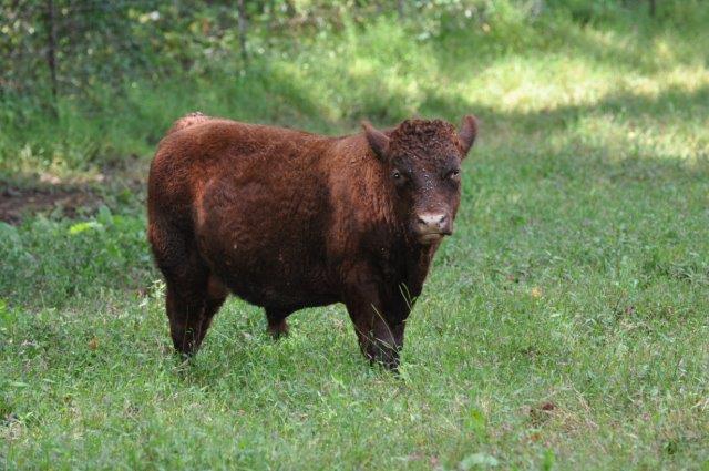 When we were selecting animals for our Traditional Devon project, Wooz decided to free-lance by selecting a cow of her own from Ivan Rowe’s Cornwall herd…Goldings Snowdrop. We bred her to the great English bull, Millennium Falcon…from Shiamala Comer’s herd. The embryos were brought here and Falcon calved at Thistle Hill almost exactly a year ago.