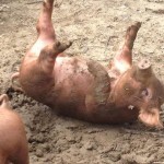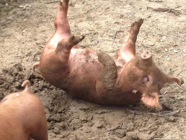 ….rolling in the mud. There can’t be a photo that better captures pure joy. The photo and the pig belong to Mike Jones, who just purchased some cows here at Thistle Hill. (see “Parting is sweet sorrow” below)