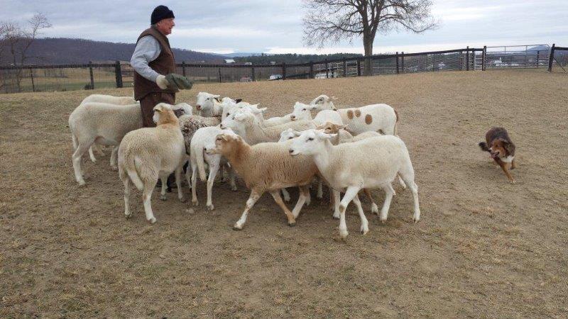….ok…it’s still only sheep…and if you make a mistake and praise her, she’ll break-off and come over for a pat….but these are even “new” sheep! Pokey went to an adjacent field to find the flock…rounded-them up…moved them through the gate in the background…. and brought them to trainer Monroe Williams of Strasburg.