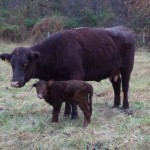 ….what’s a little rain when you can welcome a new baby first thing in the morning? Even when you get clean jeans muddy tagging her? This heifer is by 256 out of Thistle Hill Jackpot. So far the bull/heifer ration is just about even.