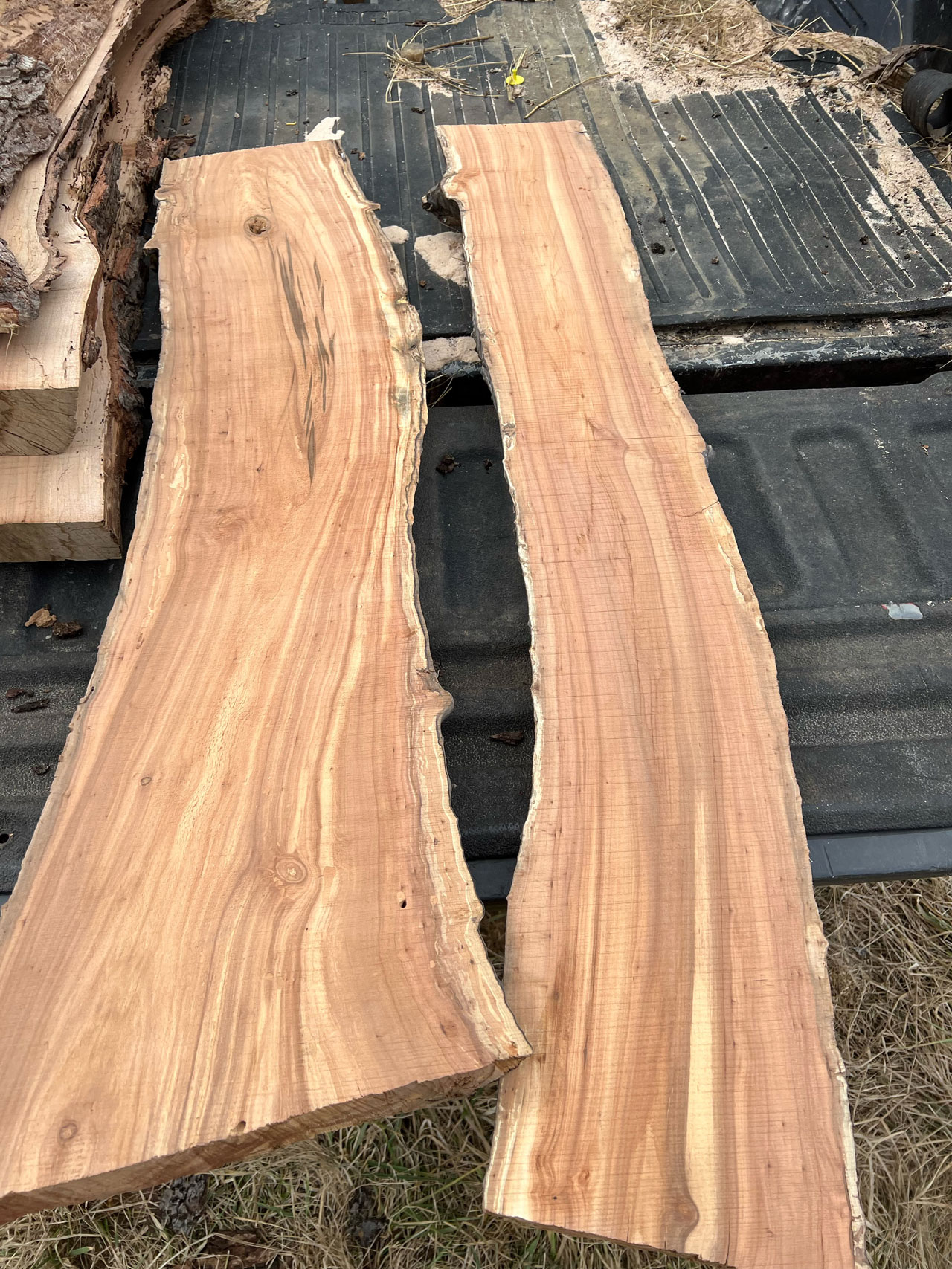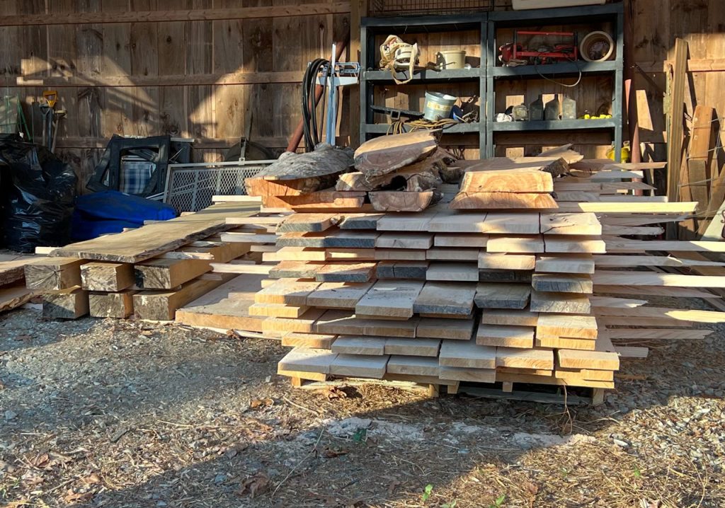 Thanx to a neighbor with a portable sawmill we were able to turn six trees…oak, walnut and cherry into high grade lumber. Garrett Heydt was the man with the saw and he did an excellent job.