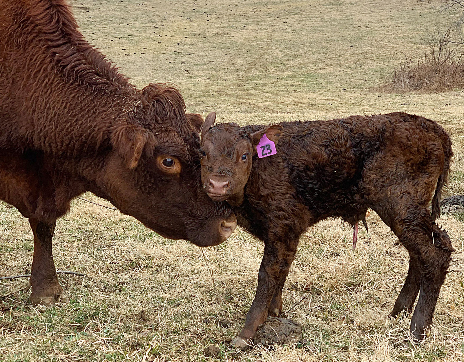 The oldest cow in our herd at 16, M180, greeted us with a bull calf.