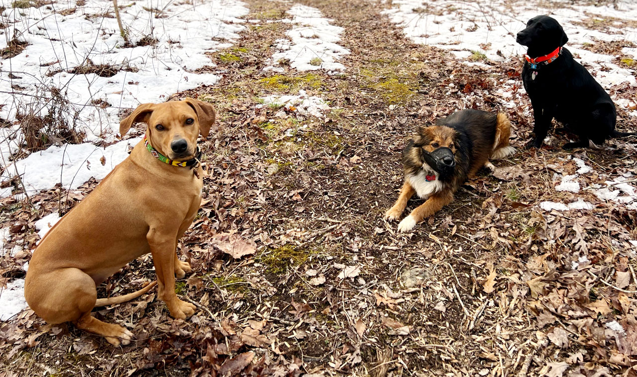 Pochahantas (center) but you can call her Pokey is the oldest in the group and right now is away on assignment…accompanying Church to veterinary school at Cornell. She’s an English Shepard.