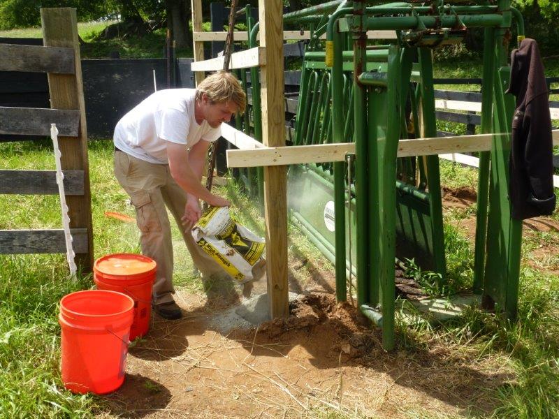 …is a new shed covering the working chute. Farm manager Duane Ard sets the posts while, once again, I do the hard part. Taking the picture.
