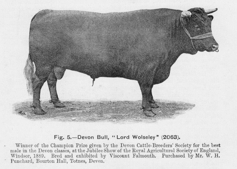 Bulls, Cleave, England The “proper Devon”…continued…. June 21, 2013 / No Comments ….is “Lord Wolseley”, the champion bull at the Royal Agricultural Society’s Jubilee Show in 1889. Bred by Viscount Falmouth, himself, and sold to a farm in Devon. Click to enlarge and thanks again to Juliet Cleave.