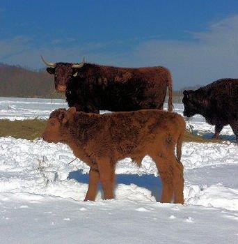 ….a bouncing baby boy by Thistle Hill Red Lad. Brooke Henley in Burkittsville, Maryland says he’s “growing like a weed” despite being born in a snowstorm. Brooke and husband, Tom Garnett, are calling him Snowball. Dad is descended from our Watson bull and our first really outstanding cow, R3, who is still producing beautiful calves for us here in Virginia. You’ll want to keep an eye on Tom and Brooke’s “Spring Pastures Farm”.