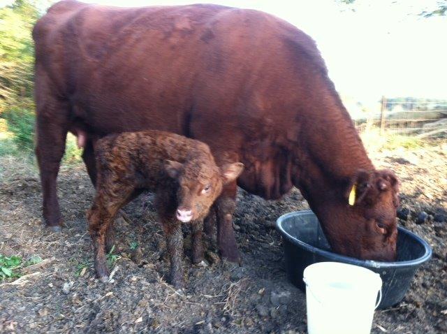 T64….a match that began here at Thistle Hill but consummated at the Hendrix farm in South Carolina.  THF 64’s new heifer by THF 31.  This is now the third heifer in a row for 64.  Grandma is still in our herd and also producing mostly heifers.