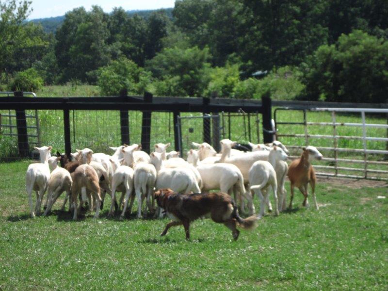 ….”Pokey“, of course. Our English shepherd puppy is now exactly a year old and showing great aptitude doing what English farm dogs do.