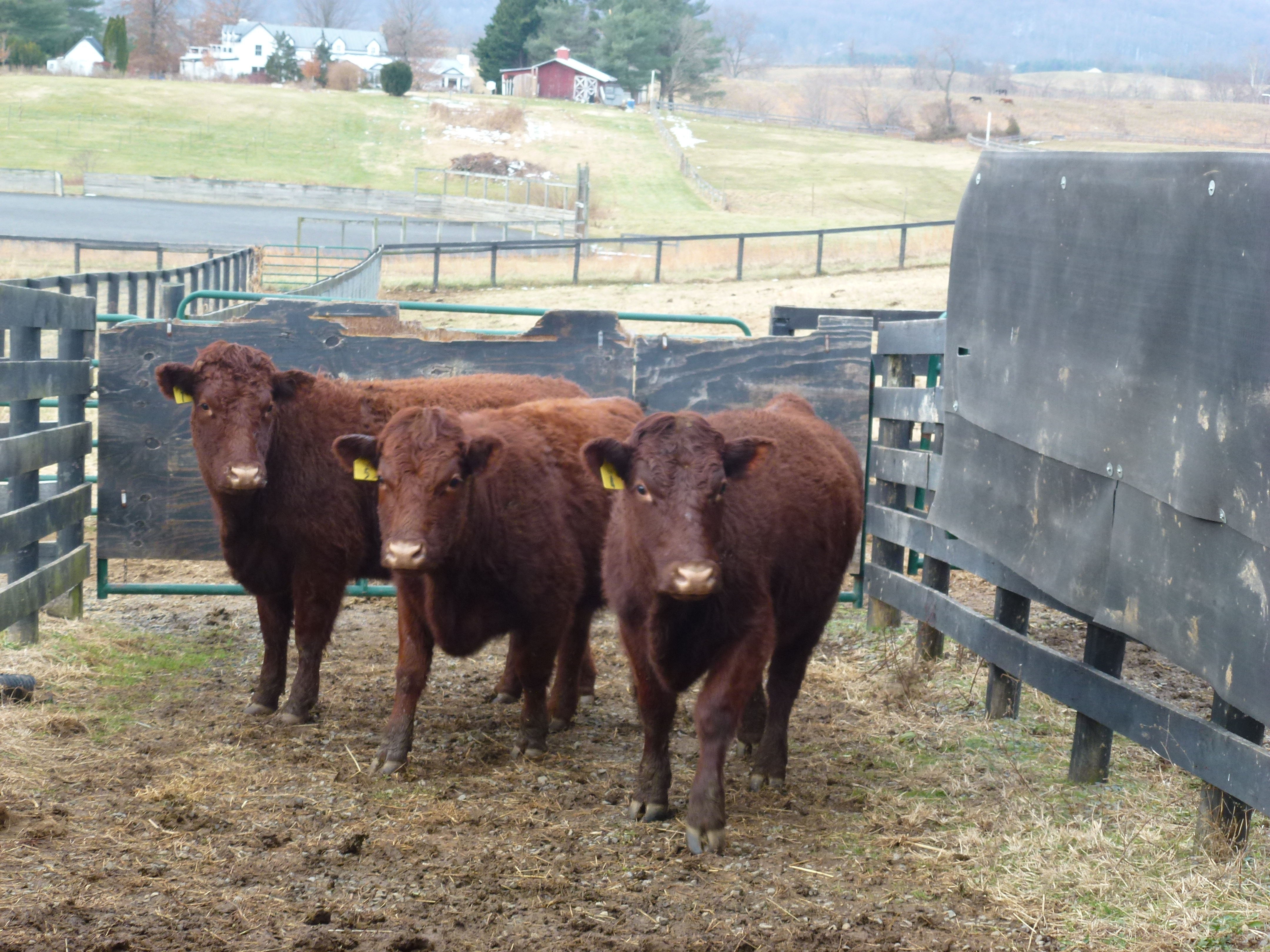 20131216_17….readers of this blog know that Thistle Hill, in cooperation with two other American breeders, has been selecting the best of pure English genetics (semen and embryos) and importing them.  The project is now 3 years old and our first heifers have finally been delivered to the vet for breeding.