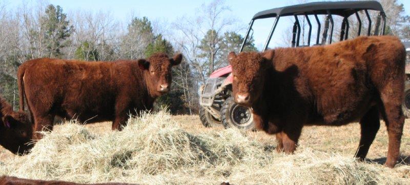 On the left is Thistle Hill Shenandoah and on the right Thistle Hill Brandy Station. They’re both two now and ready for breeding. Both were sired by our herd bull U2 Double Trouble. He’s made a big impact on our herd, too, and will be going back into the herd this week once we let the AI work settle.