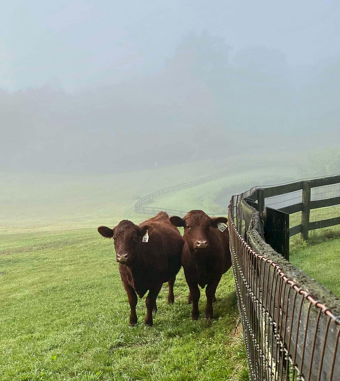 …on a foggy morning.  Both are about 18 months out of American Devon dams…but their English sires have had an impact!