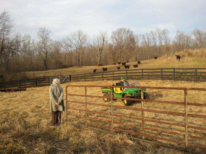….patiently. When you call the herd into the pen, generally a few of the senior cows start the move and the others tag along. That’s the way they’re built.