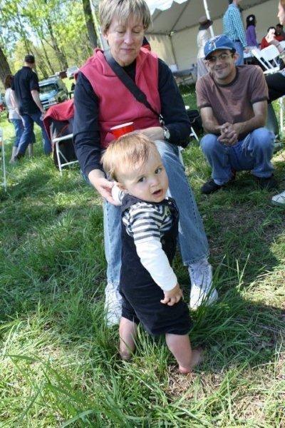 was Rowan Mayo. He is, as the whole blogosphere knows, my great-grandson and (to be honest) the only member of the latest generation. But with 14 grandchildren, that’s not going to last long. Grandma Linda and Uncle Matt behind. Rowan looks ready to work to me.