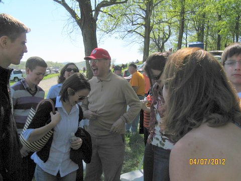 Among the guests (in the red Nationals’ cap) the Inspector General of the Navy, Admiral James Wisecup. No he wasn’t keeping an eye on our Wounded Warriors money. I call him “Phil” and he’s my nephew. He’s surrounded by his four daughters and son and if you enlarge the picture you’ll see the Navy pilot one of his girl’s is dating. He’s L/JG Tom Kilcline.