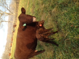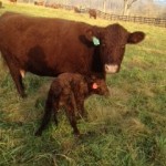 …both on and off the farm.  But here’s our pre-occupation right now at Thistle Hill:  welcoming new calves to our world.  It’s the most special time of the year.  This is our seventeenth calf so far, a heifer, by one of our best cows.  The sire is U2, which means she has Rotokawa 974 in her blood.