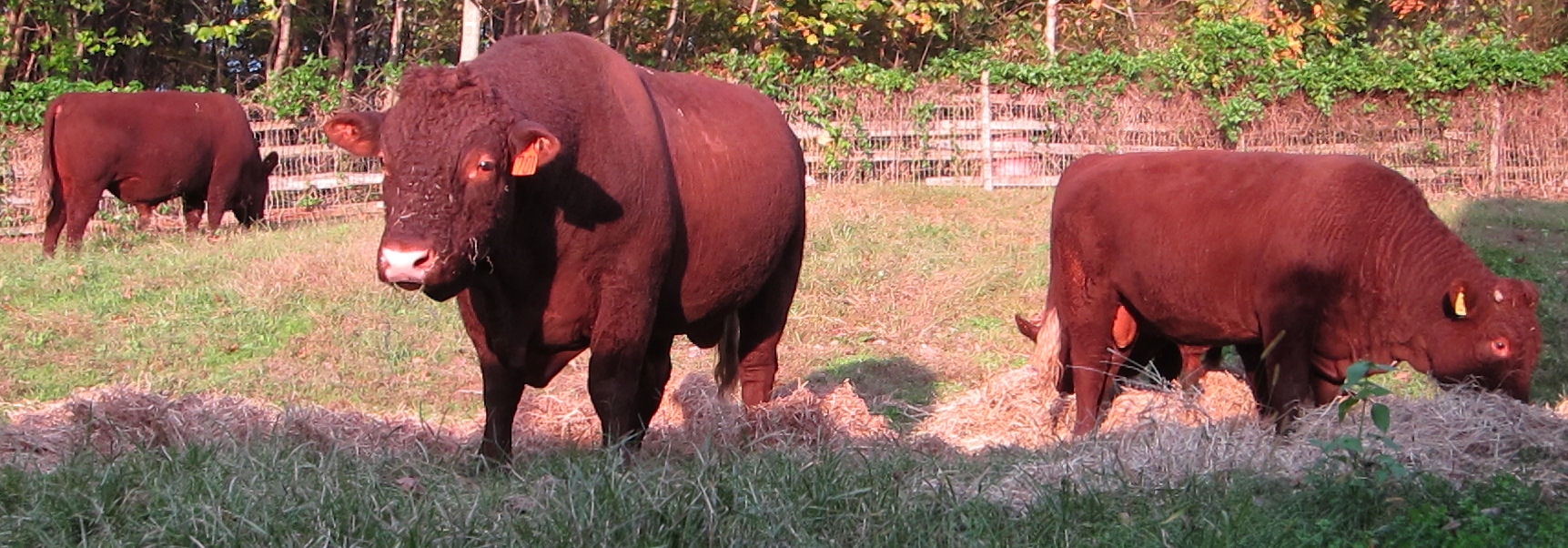 Well, if you knew anything about cattle, you’d think “thank God, they’re Devon”. But our new neighbor, Mike Campagna, fresh from Alexandria, Virginia where he’s a real estate appraiser, was up close and personal with cows for the first time in his life. But Mike was cool, he remembered that the previous owners had a dog exercise yard behind the barn, so he just opened the gate and said “here boy”.