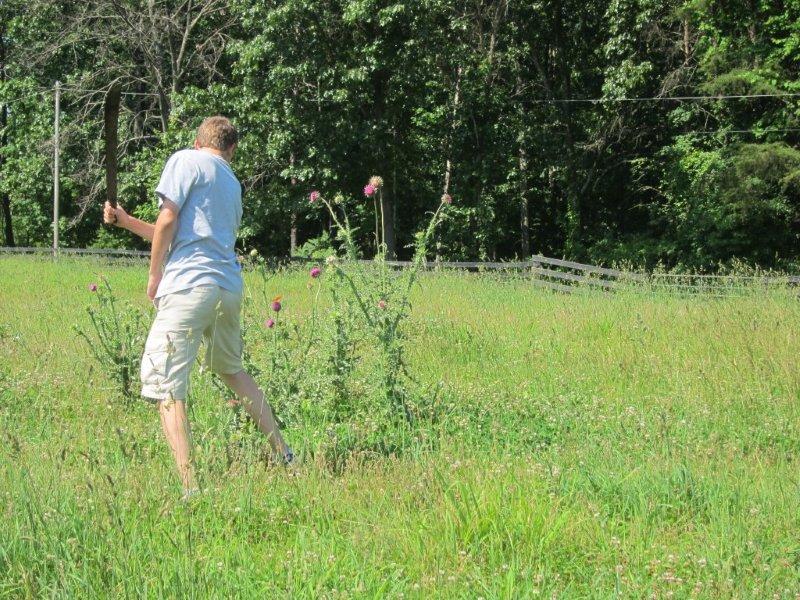 You wouldn’t think that, with a name like Thistle Hill, we’d be making war on thistles.  But this is grandson, Church, on summer break, practicing his back-swing for tennis.  That’s what we tell him anyway.