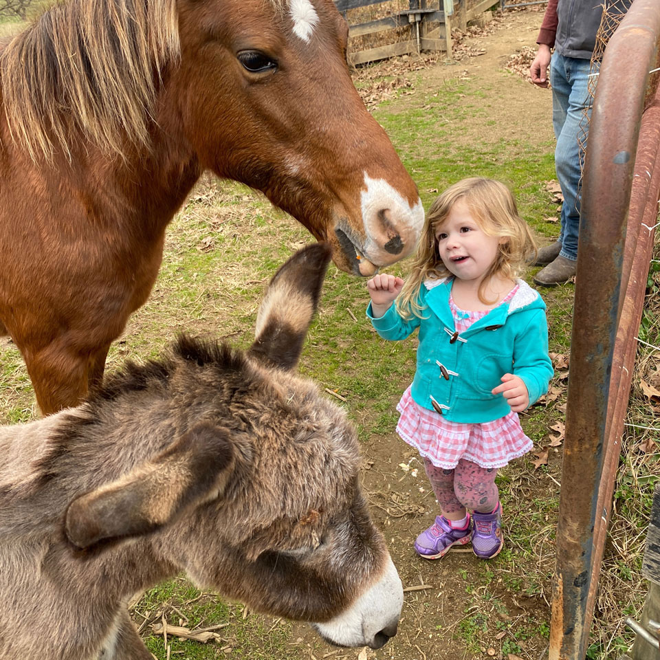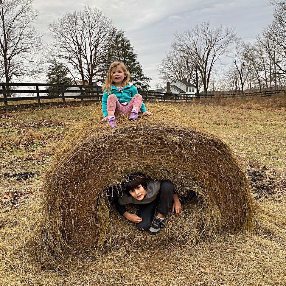 Great-grandchildren Rowan and Tillie recently spent the day at Thistle Hill and not surprisingly they didn’t want to leave.  From playing in an old hay bale to feeding carrots to the pony and donkey it was hard to keep them moving to the next treat.