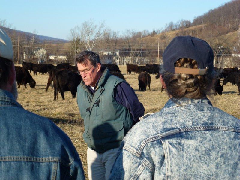 20130221_17….to brave a cold February evening to talk about pastures.  Cliff Miller of nearby Mt. Vernon farm in Sperryville was host to a group of grass fed farmers to discuss the finer points of raising all-natural beef.  Cliff does a better job than most of us in documenting the results he’s achieved and he’s getting excellent results.
